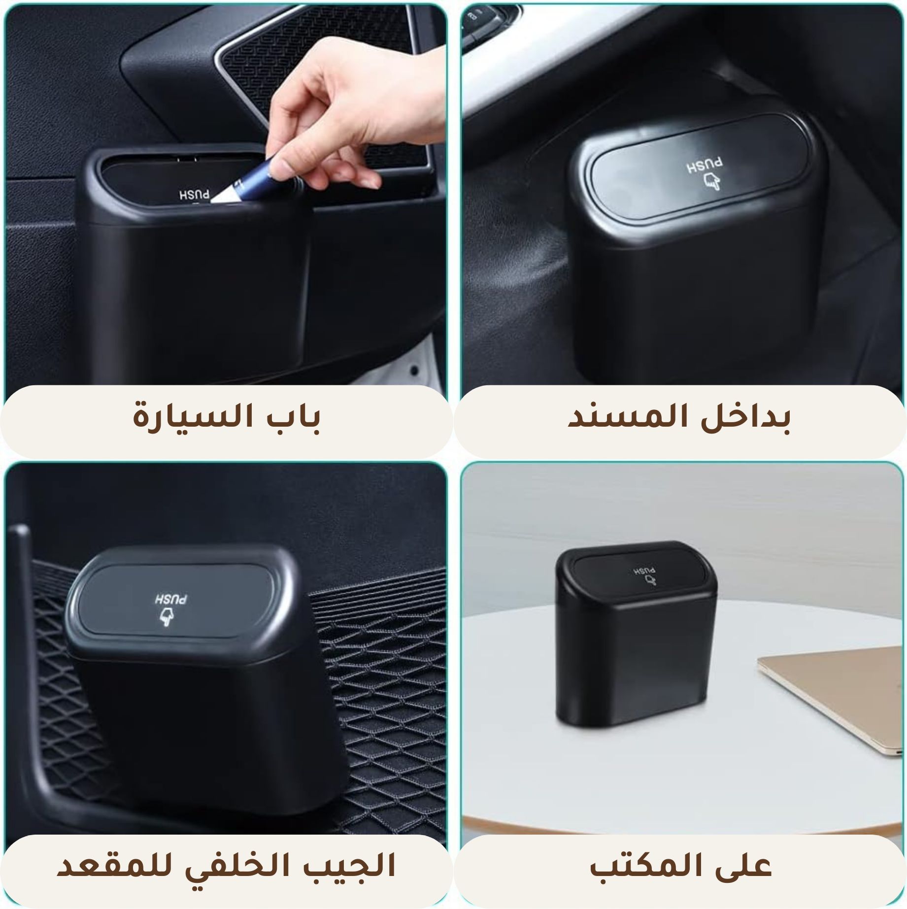سلات زبالة للسيارة (4 قطع) – شكل مرتب وحجم مثالي + 60 كيس قمامة بحجم مناسب