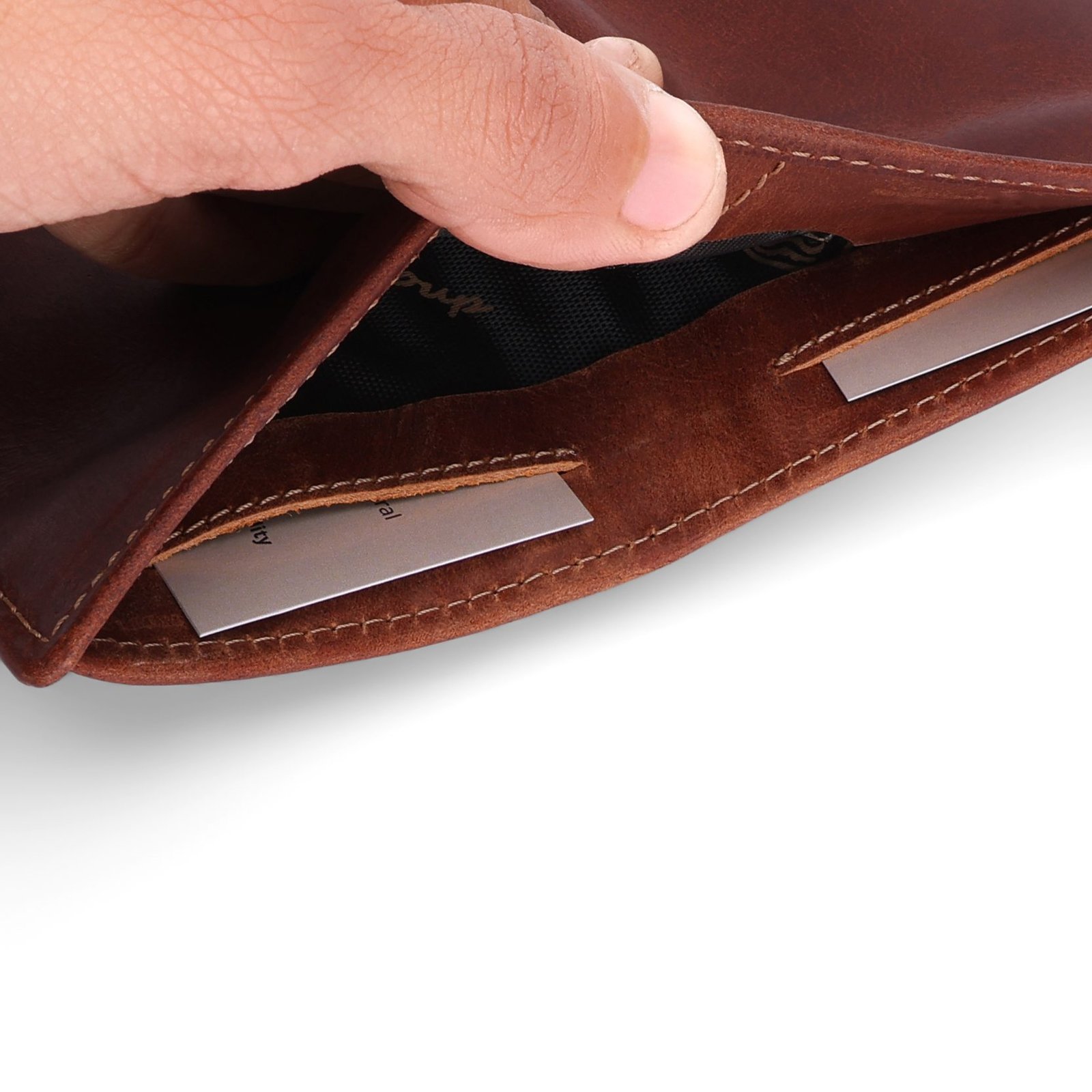 جلد Pull-up الطبيعي في PatinaFold™ يكتسب مع كل استخدام لمعة عتيقة وخدوشاً خفية تُسمى Patina — وهي ليست عيباً بل دليل أصالة. بعد أشهر من الاستخدام ستمسك محفظة لا تشبه أي محفظة PatinaFold™ أخرى في العالم، لأنها أصبحت تحمل أثرك أنت وحدك.
